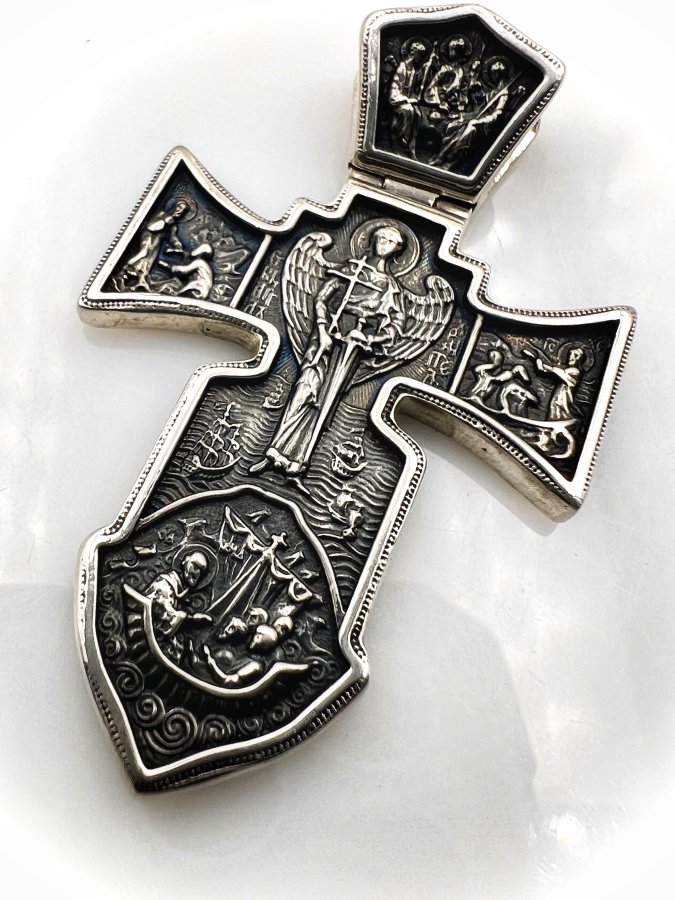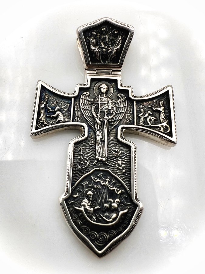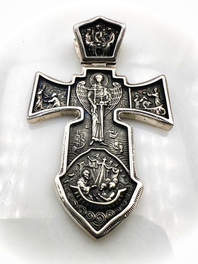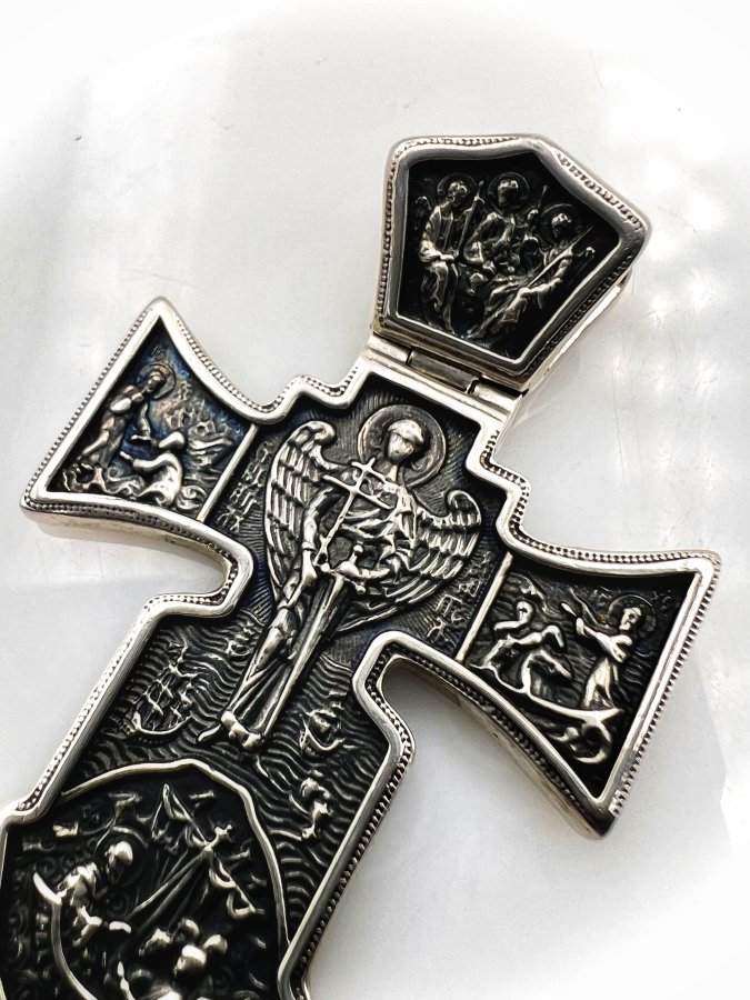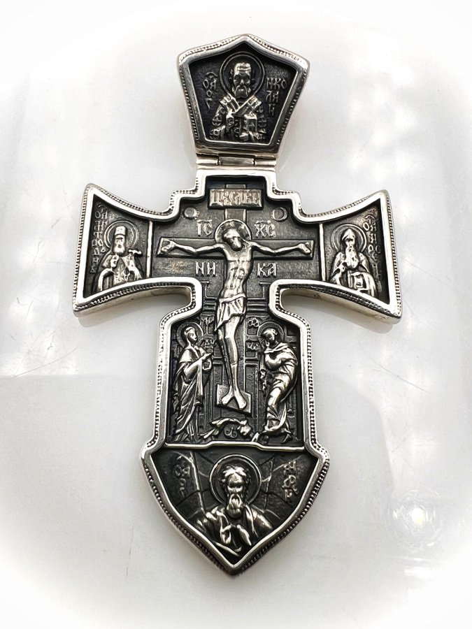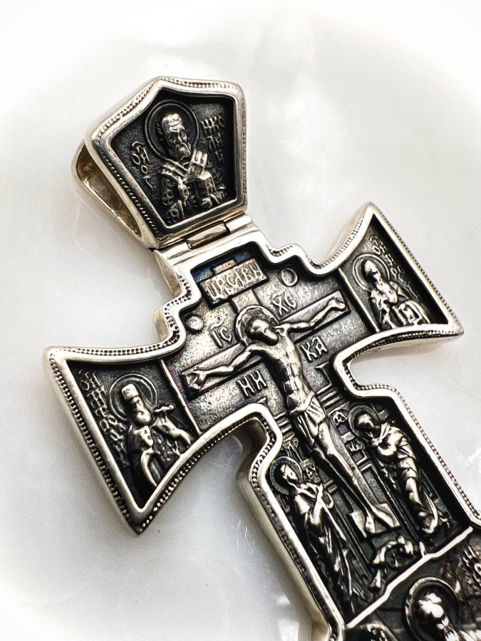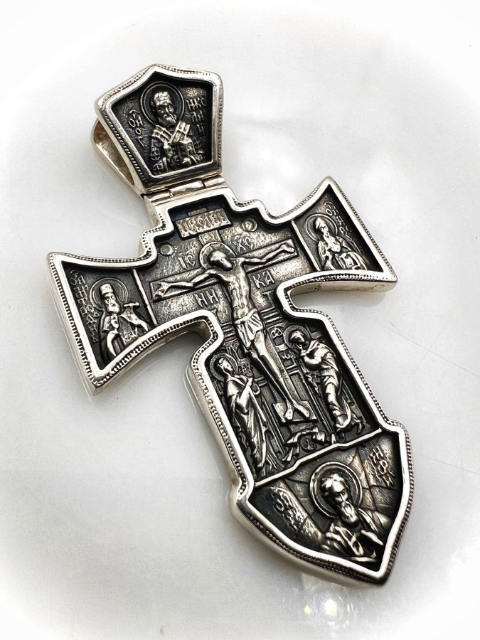 Mặt thánh giá bạc 925 Nga mới tinh phôm bự hoa văn 2 mặt sắc nét rất đẹp, size 32x52mm, nặng 15.92gram (4.25 chỉ), giao thông 7tr5❤️ Thiên 0923.12.6789