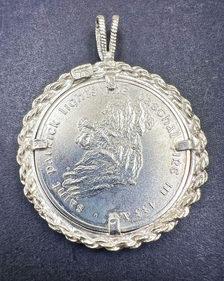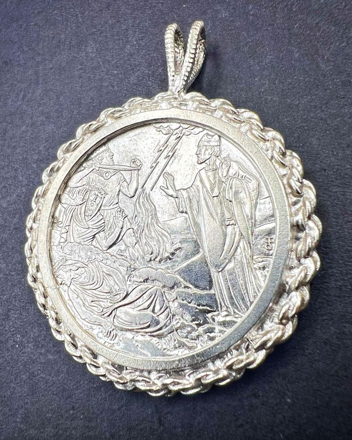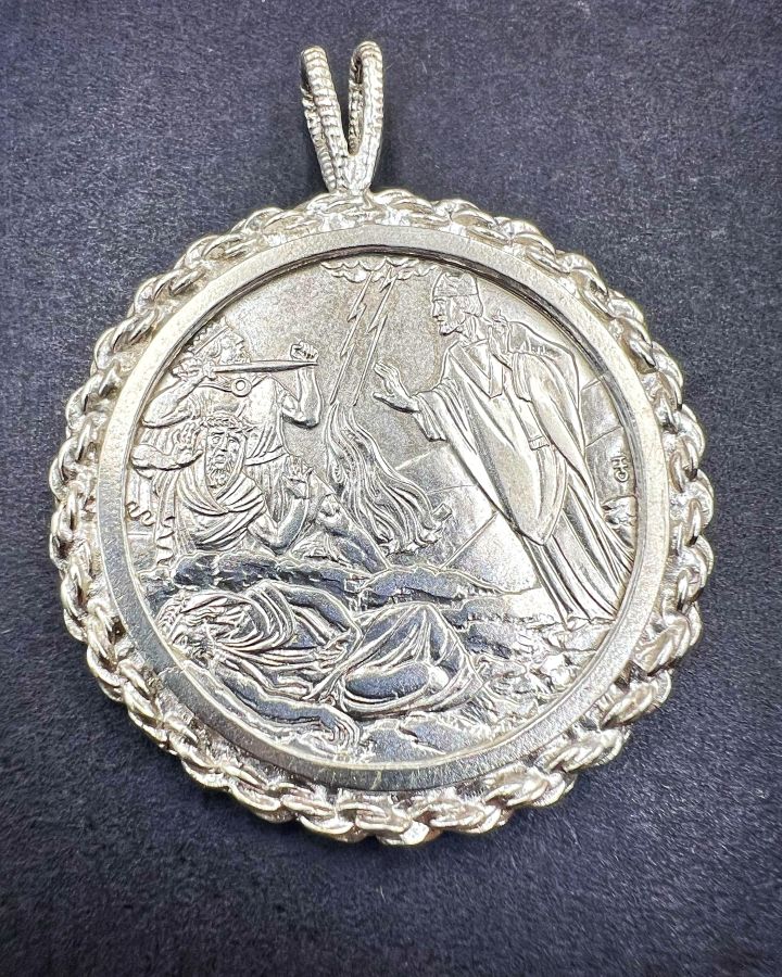 Mặt xu bạc công giáo hoa văn 2 mặt sắc nét rất đẹp, phôm bự, size 49x60mm, nặng 40.26gram (10.73 chỉ) Thiên 0923.12.6789