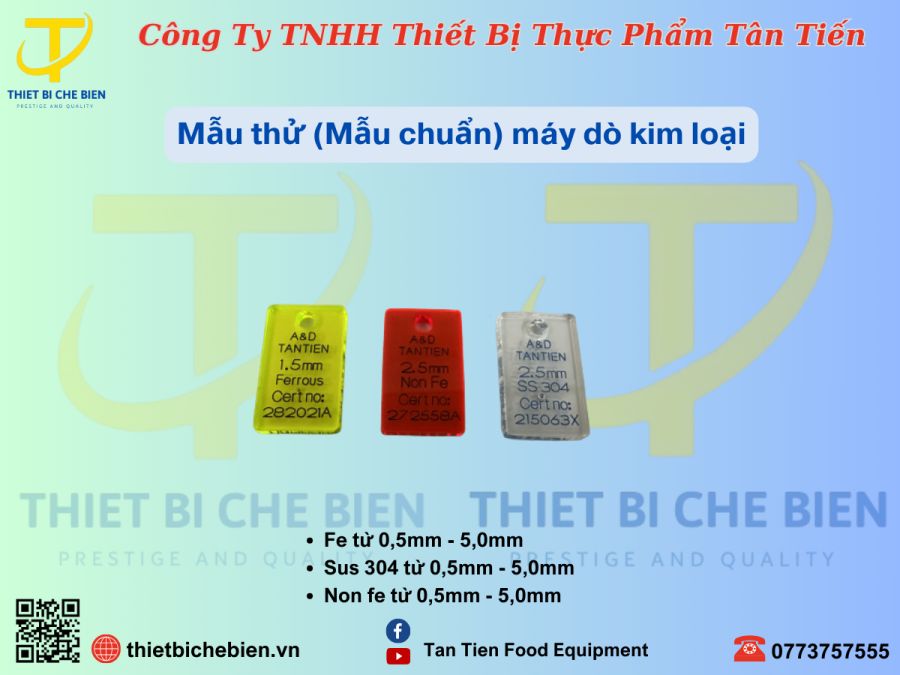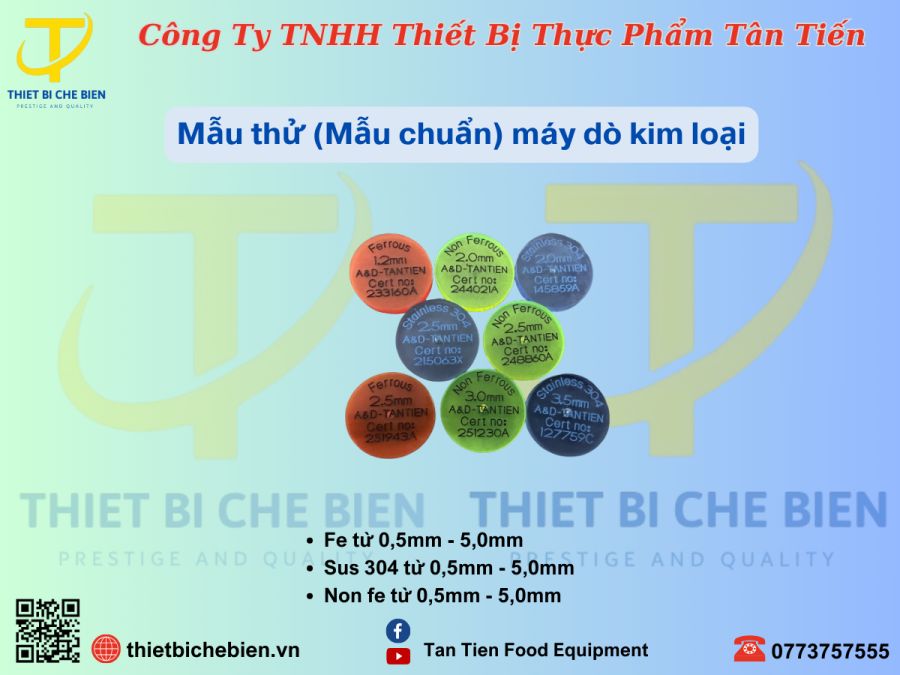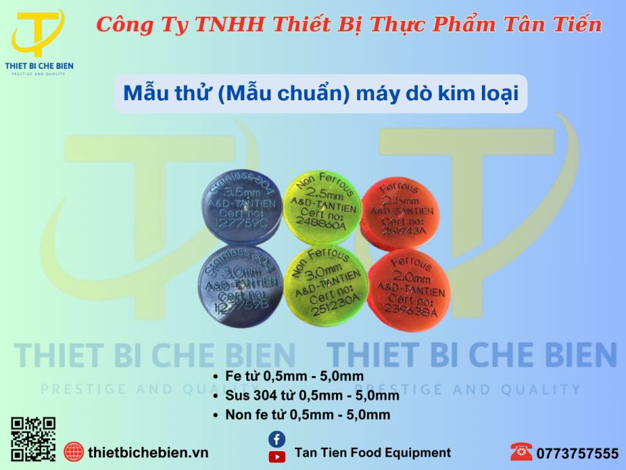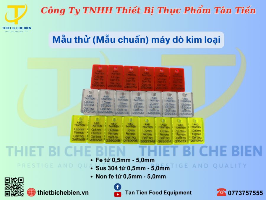 Công Ty TNHH Thiết Bị Thực Phẩm Tân TiếnMẫu thử máy dò kim loại, mẫu test máy dò, mẫu thử kim loại