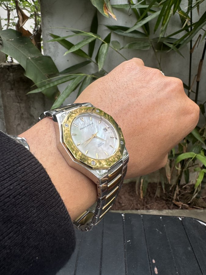 - Size: 38 chưa núm - máy Pin năng lượng Nhật - Kính thường -mặt xà cừ- niềng đá- Dây khoá Zin 🚰 Chống nước: 30 M ⏰ Hình thức 96% - mới khoảng 10triêu 💰- 1tr350 ( KO hộp )