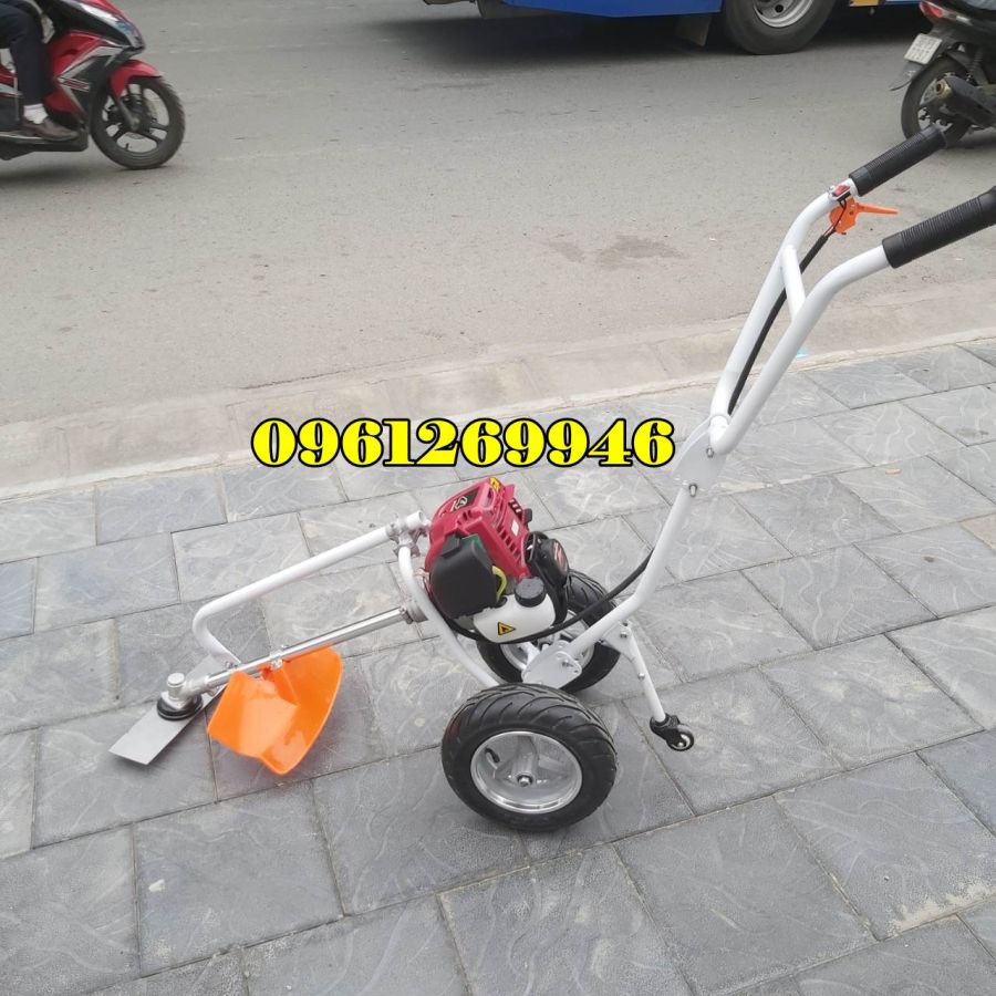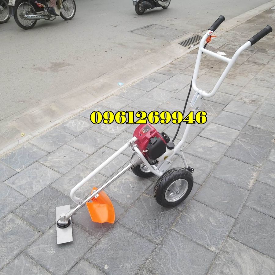 Máy chạy bằng xăng, trọng lượng nhẹ, được trang bị hai bánh xe và tay đẩy dài, giúp người dùng cắt cỏ tại khu vực có diện tích rộng một cách dễ dàng, nhanh chóng.