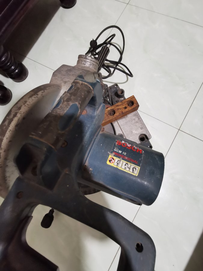 Máy cắt đa năng Bosch GCM 10 Professional điện 220V. Công suất 1800W. Vòng 4500 vòng/phút. Nặng 14kg. Có thể cắt góc từ 0 đến 45 độ. Máy hoạt động tốt, an toàn, mạnh mẽ. Máy đang dùng lưỡi cắt gỗ 254 mm. Thay lưỡi nhôm được để cắt nhôm (lưỡi cắt nhôm anh em tự mua). Nhận chuyển khoản 1.680 cá + Ship Hoàng Khiết 0708294986