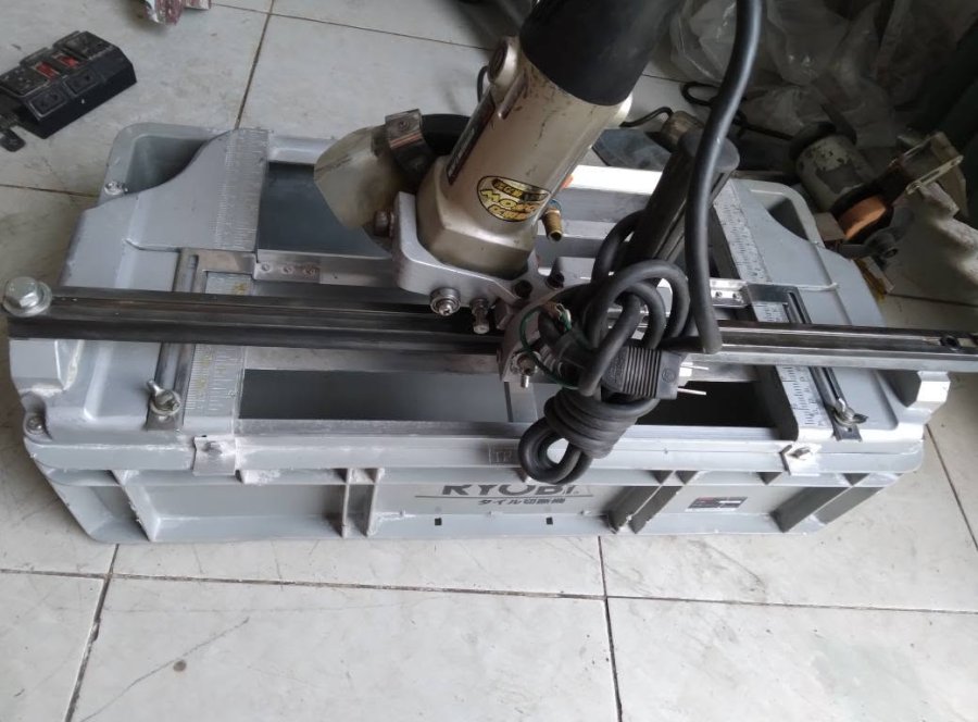 Máy cắt gạch ryoby 100v lưỡi 125mn. 1050w. Cắt gạch 400mm xuống. Về độ cắt gạch gỗ