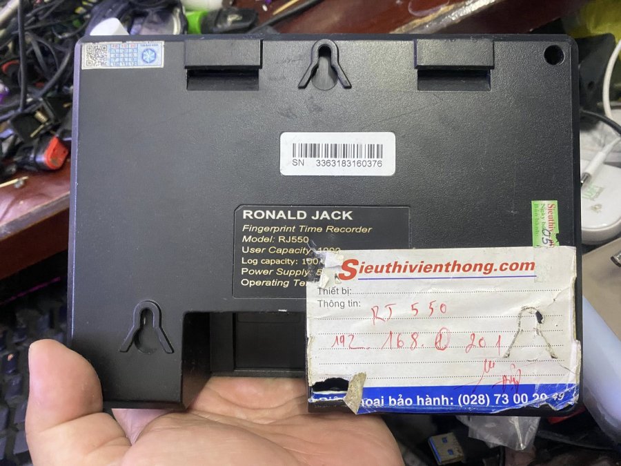 máy chấm công vân tay Ronal Jack rj550, lên bình thường, không biết mật khẩu, chỉ có máy trần, giá 200k