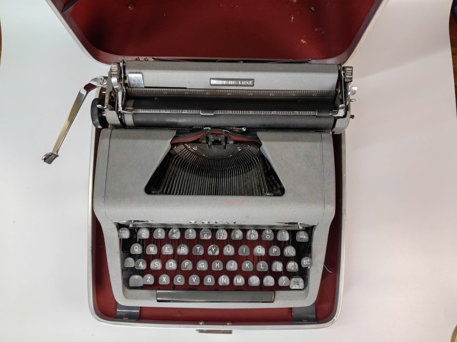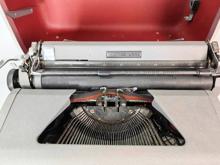 Máy đánh chữ Royal Quiet De Luxe cổ điển với máy đánh chữ The Magic (Trade Mark) Margin.