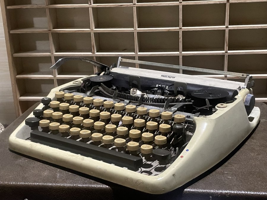 E bán 1 máy đánh chữ hiệu Triumph do Hà Lan sx, tổng thể máy như hình chụp, phần cơ còn khá tốt nhẹ gõ. Cuộn mực khô, ai thích trưng bày mua giùm e cảm ơn. E bao ship toàn quốc sau khi nhận ck.