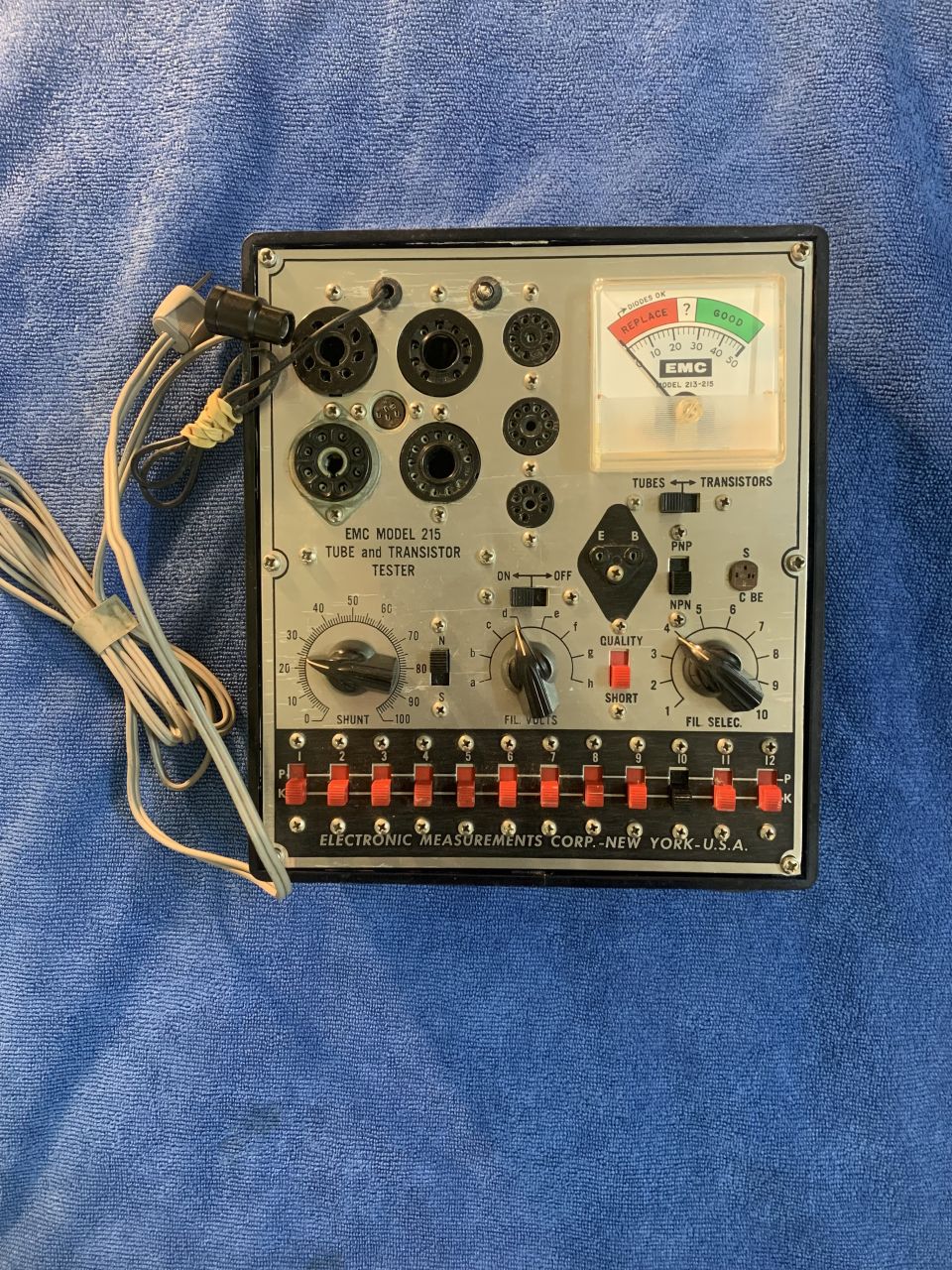Tube and Transistor tester EMS 215 của mỹ còn mới đang xử dụng tốt đo được tât cả các đèn ,sx 1968