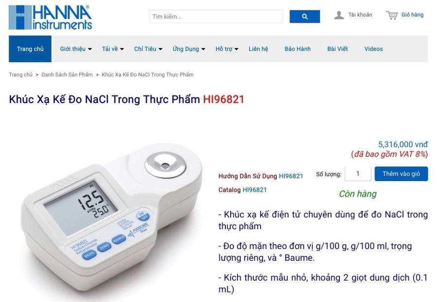 Máy đo độ mặn (NaCl) HANNA HI96821 Made in Romania. Máy còn rất mới, đo chính xác. Máy xài 01 pin 9V.