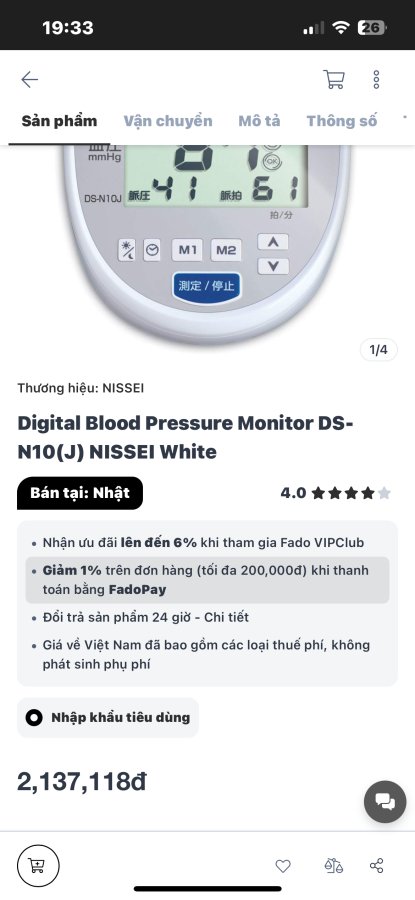 Máy đo huyết áp kỹ thuật số NISSEI DS-N10, loại bắp tay, đạt chuẩn ESH, Kiểm tra lâm sàng của Hiệp hội tăng huyết áp Châu Âu.