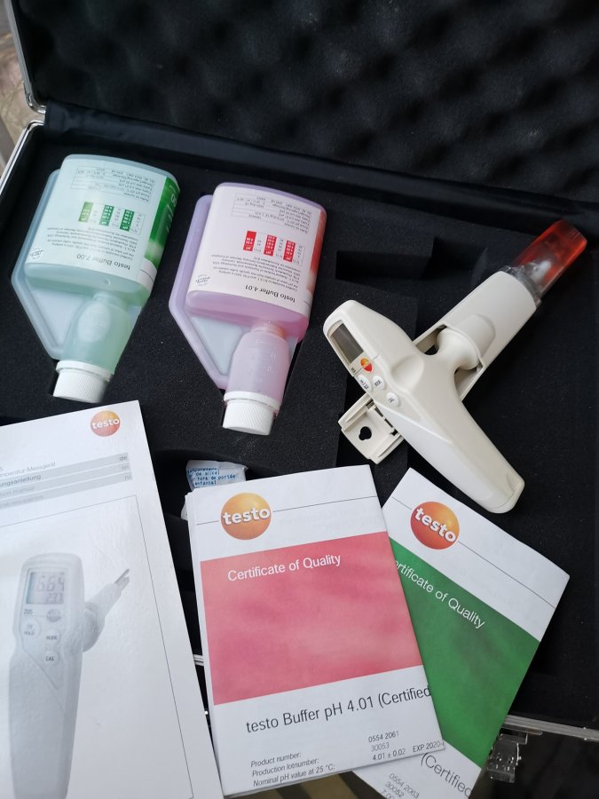 Máy đo PH Testo 205 hàng chuyên dụng cao cấp nguyên kit. Máy thiết kế đầu đo cứng giúp đo tốt PH từ nước, dung dịch đặc tới vật bán rắn như thịt, cá, đất.... Kèm theo máy là 2 chai PH 7.0 và 4.0 dùng calibration. Máy hình thức còn mới, kèm đủ phụ kiện sách vở và case nhôm như hình. Giá new tầm 500$, shop tl giá rẻ.