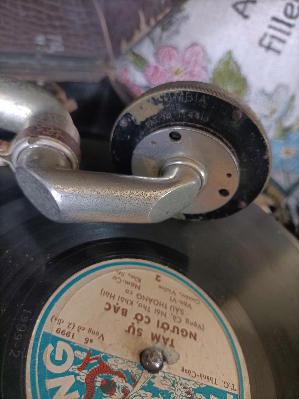 Máy hát columbia đời đầu siêu cổ , hàng về công châu âu nguyên bụi ,vẫn hoạt động , nghe hát tốt , kèm đĩa , kim secours