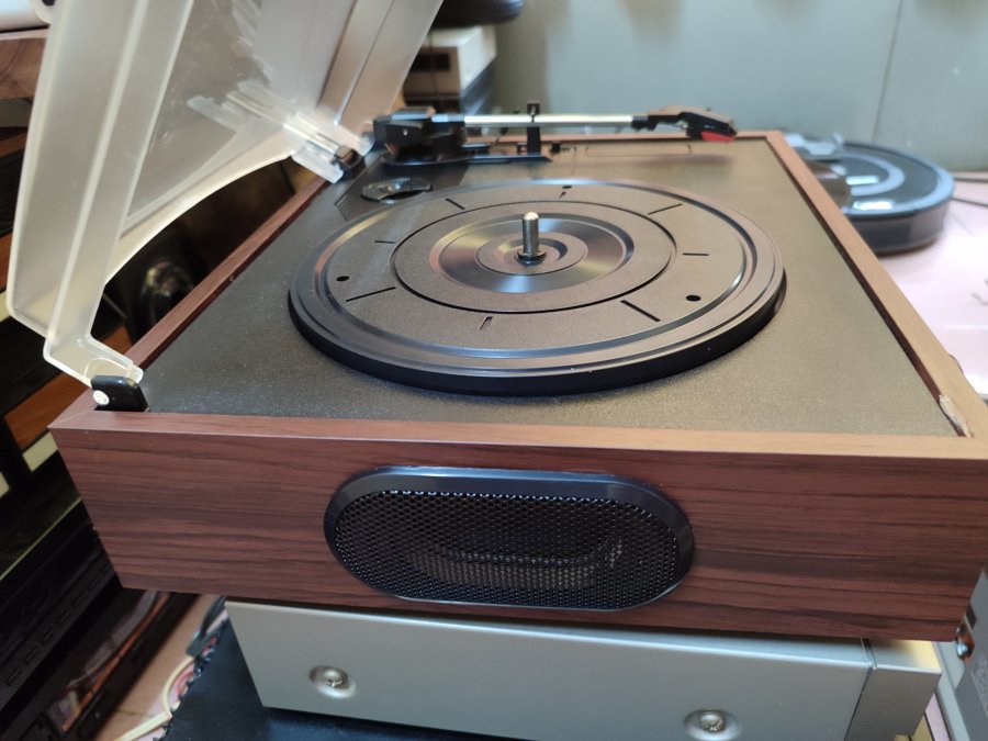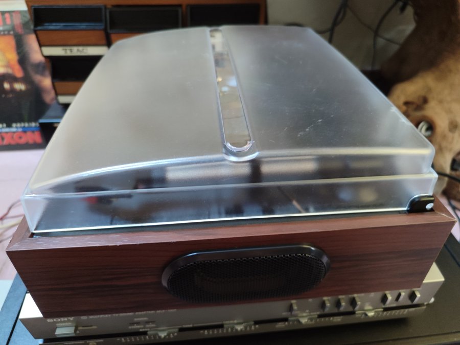 Máy hát dĩa than kim cassette tự hành, dùng điện 100V, hoạt động tốt, chất âm rất hay, có cổng AV xuất âm thanh ra amply