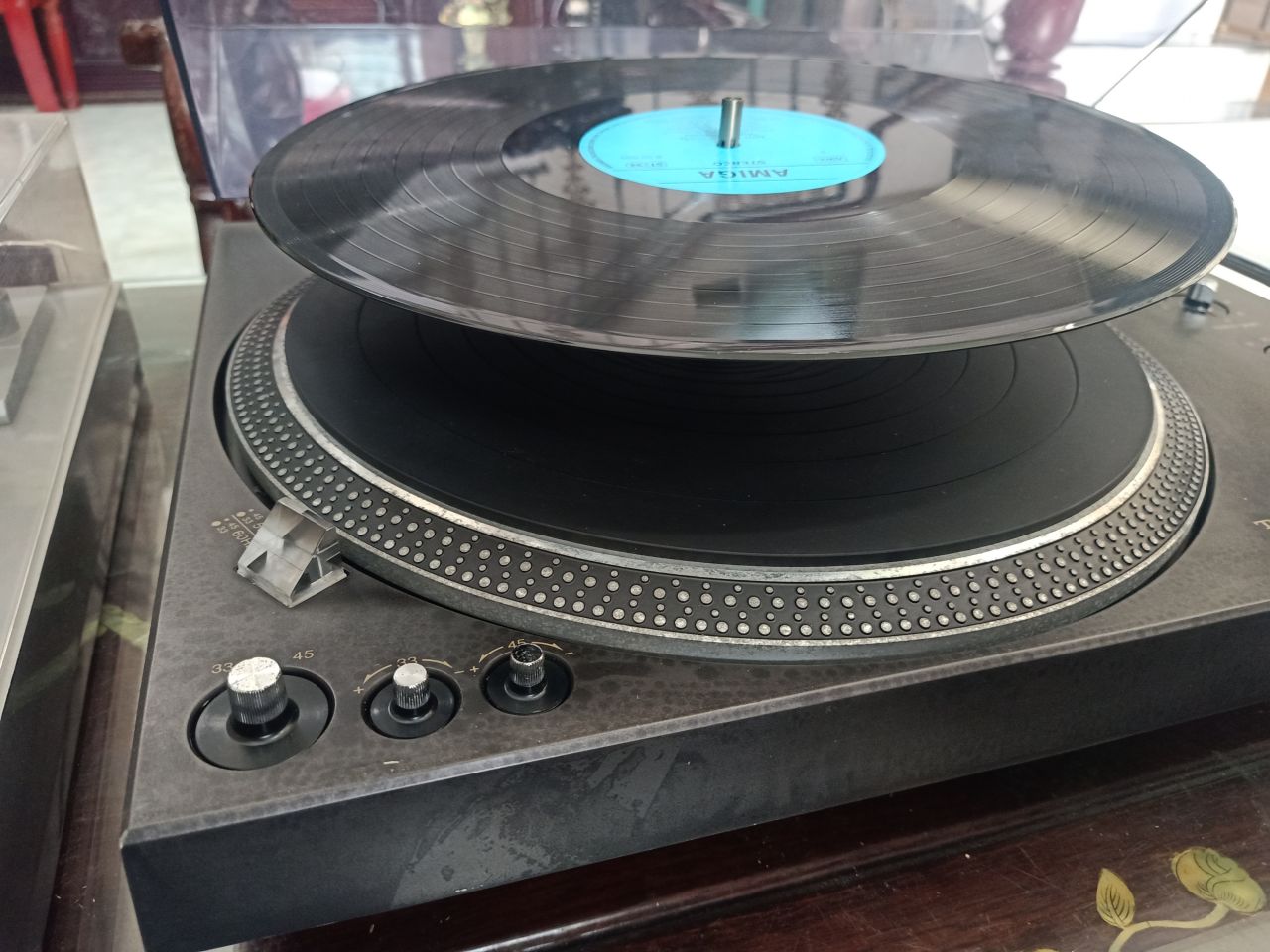 Bán máy đĩa than các bác để lên 1 lần vài đĩa cần vào tự động hát xong đĩa tự động rớt xuống và hát đĩa tiếp theo máy tự động hoàn toàn