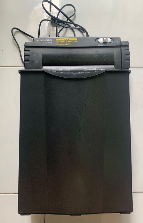 Máy gồm 1 phần máy và 1 thùng chứa giấy vụn ra