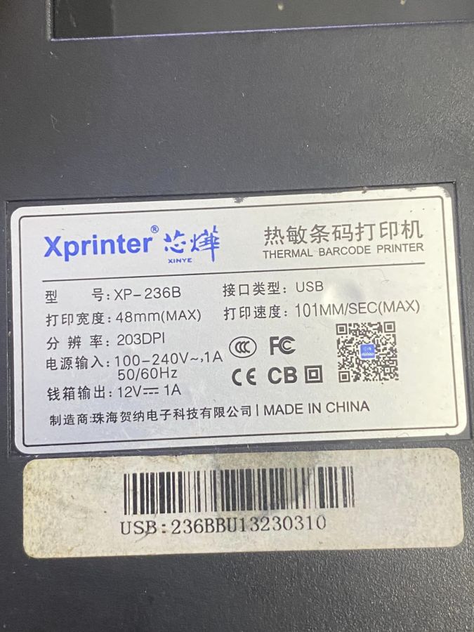 máy in tem nhãn Xprinter xp-236b, khổ in 58mm, giá 500k