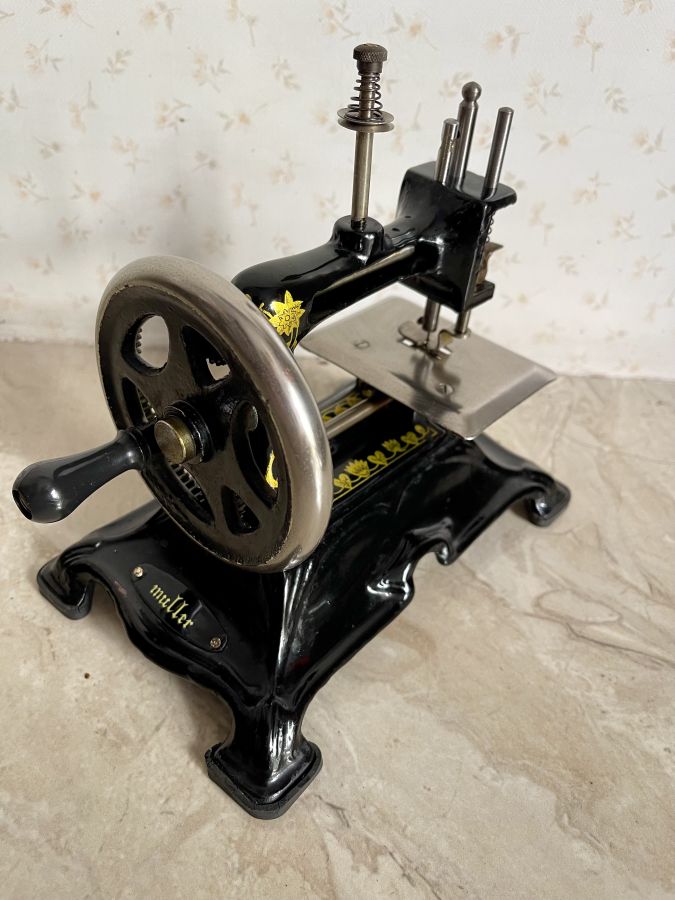 Máy khâu cổ Muller quay bằng tay zin nguyên bản , dòng nhỏ gọn để bàn cổ hiếm , hoạt động ngon lành , decor đẹp Còn rất đẹp do bảo quản tốt