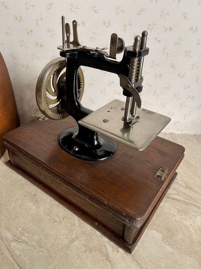 Máy khâu cổ quay bằng tay ,zin nguyên bản ,dòng nhỏ gọn để bàn khá hiếm , bảo quản tốt nên còn khá đẹp , full thùng gỗ zin theo máy Hoạt động ngon lành , decor rất đẹp