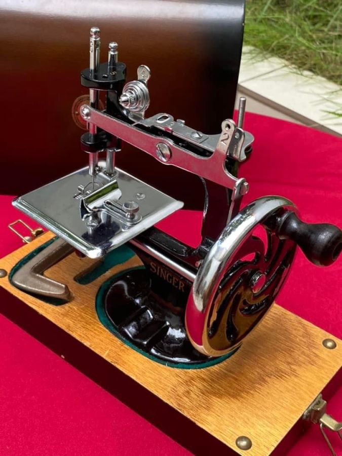 Máy khâu Singer ******** xưa Thùng gỗ- tem mạc đầy đủ Hoạt động tốt Kẹp bàn zin của máy khâu bị mất, có kẹp thay thế (chức năng như nhau) Liên hệ đt zalo 0909925312 Tùng Cần Thơ