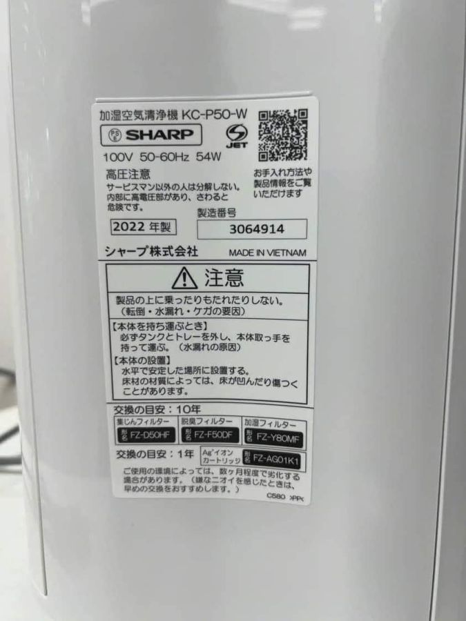 Máy lọc không khí bù ẩm Sharp KC-P50-W hàng new full box 2023