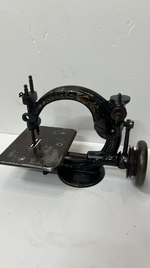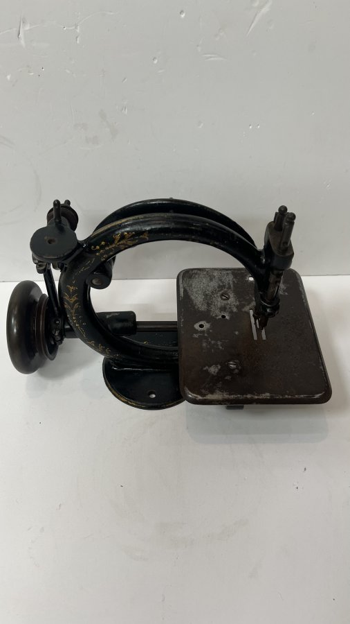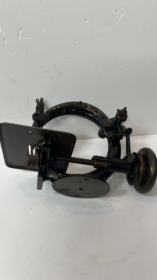 Đây là một chiếc máy may cổ điển Willcox & Gibbs, nổi tiếng với thiết kế hình vòm duyên dáng và kỹ thuật chính xác.
