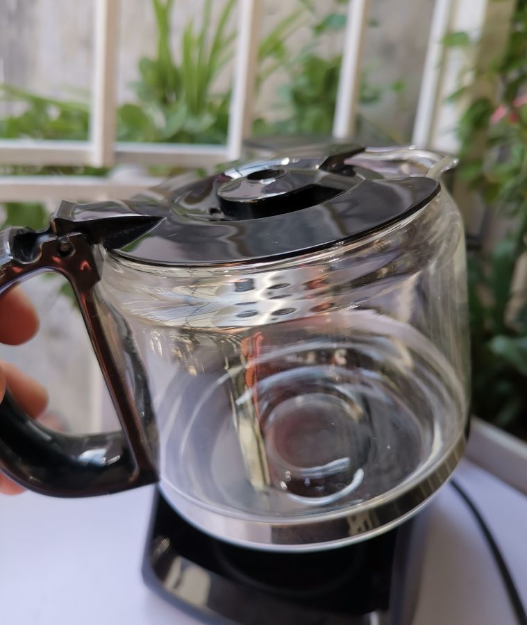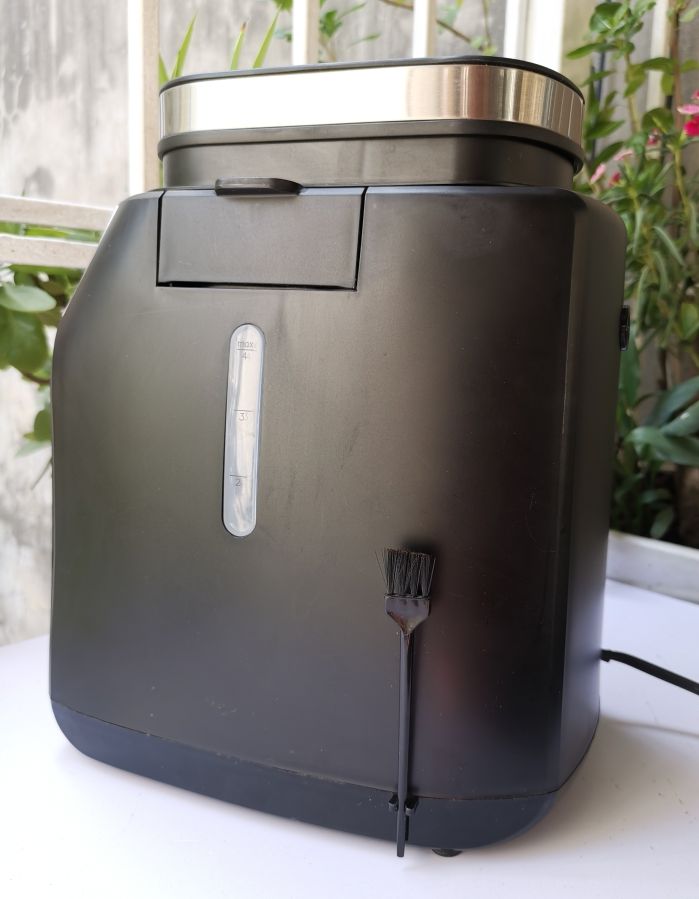 Chỉ cần cho hạt cà phê rồi bấm nút, máy sẽ tự xay rồi pour 1 bình cà phê tiêu chuẩn 4 cups xài luôn
