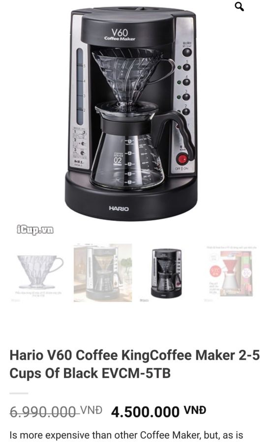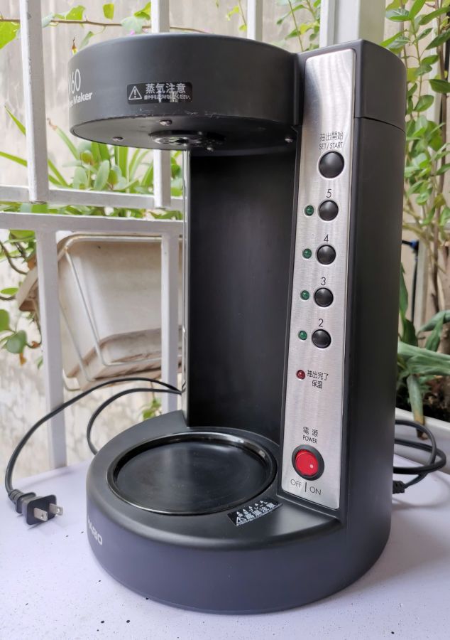 * Máy xài điện 100V/ 750W, gồm có máy như hình. Giá 2tr2 nếu kèm phễu Hario V60 và bình server used như hình + thêm 250K.
