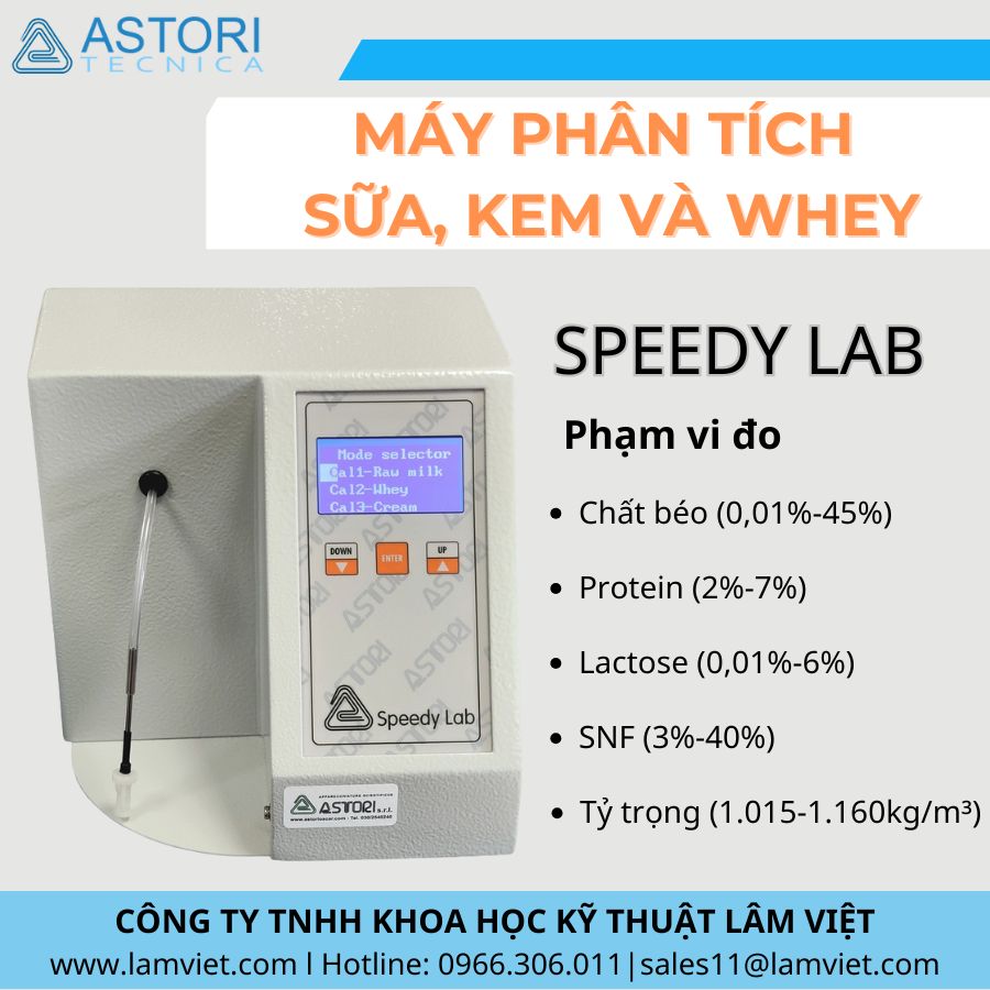 Khi nhắc đến máy phân tích nhanh sữa, không thể không kể đến Speedy Lab của ASTOR-ITALY. Đây là thiết bị hàng đầu trong việc phân tích các thành phần quan trọng như chất béo, protein, lactose và chất khô không béo (SDF) trong các mẫu sữa, kem và whey. Bài viết này sẽ giúp bạn hiểu rõ hơn về máy phân tích sữa Speedy Lab, từ đặc tính kỹ thuật đến những lợi ích mà nó mang lại