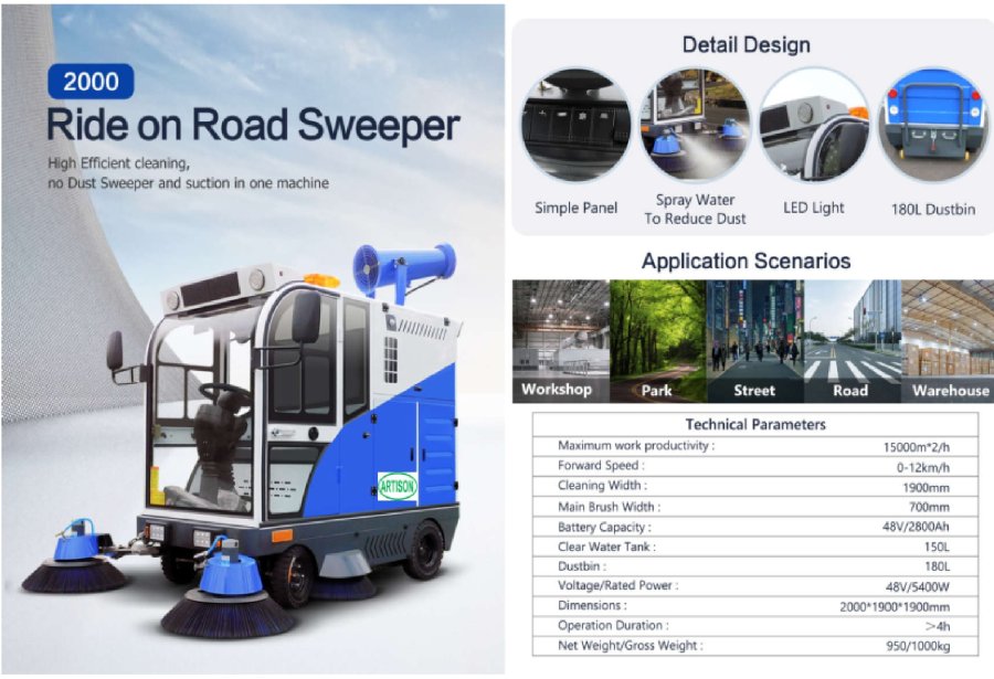 ARTISON 2000 là dòng máy quét rác tự hành chuyên dụng cho nhà xưởng, công viên, đường phố, kho bãi và khu công nghiệp.
