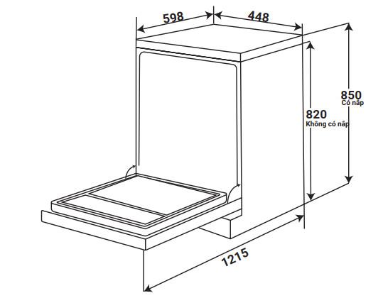 ✅ Kích thước 850C (có nắp trên) x 598R x 598S mm/820C(Tháo nắp trên)/ x 598R x 598S