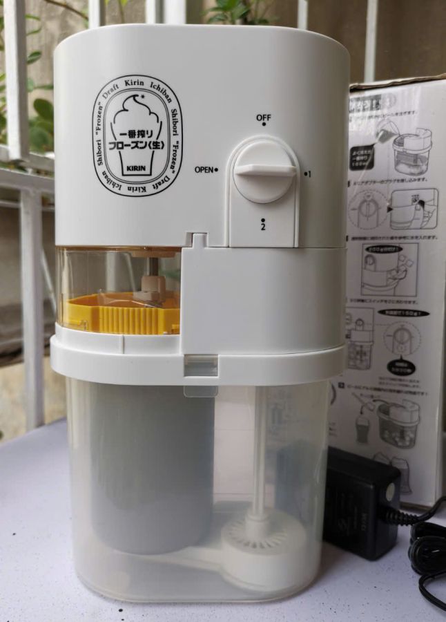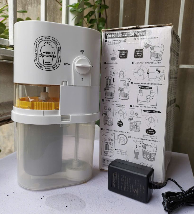 Máy tạo bọt b ia từ b ia lon hãng b ia KIRIN Nhật. Hàng siêu độc làm lạnh và tạo lớp bọt mịn như b ia hơi Máy new 100% chưa xài, điện auto 100-240V Có hướng dẫn sử dụng chi tiết trên vỏ hộp Phụ kiện đầy đủ theo máy