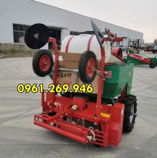 Máy được trang bị thùng chứa phân bón (dạng bột hoặc hạt nhỏ) và hệ thống rải phân xuống cùng vị trí hạt giống, giúp tiết kiệm công lao động và cung cấp dinh dưỡng kịp thời cho cây con.