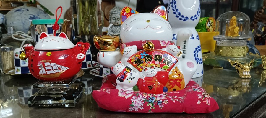 Mèo pin vẫy + hôp đựng trà. Chất liệu sứ kích thước như hình ah. Giá bán 550k !