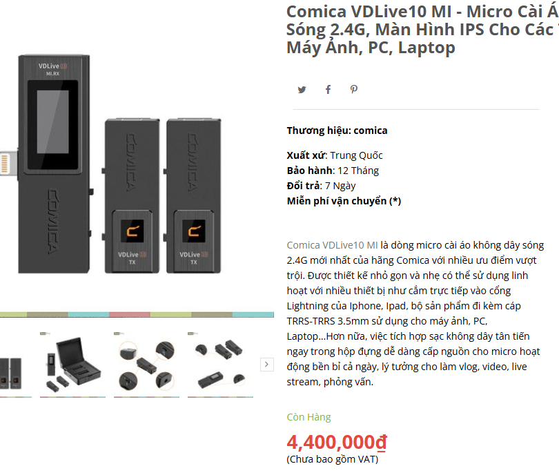 Micro cài áo không dây cao cấp chuyên vlog, quay phim, livestream, phỏng vấn... Comica VDLive10 MI