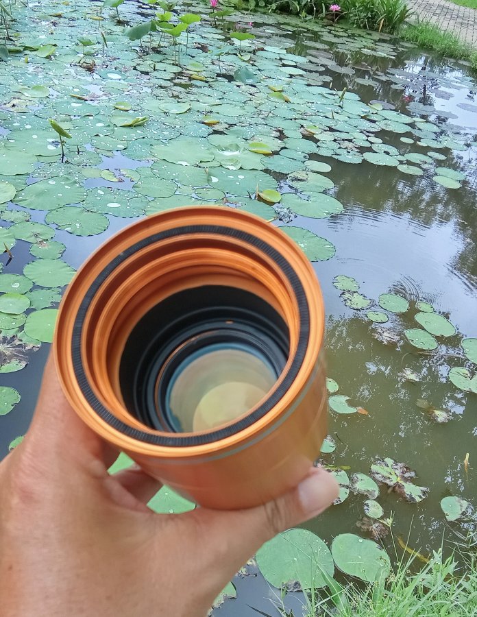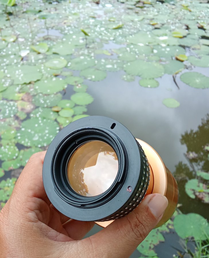 - Về ngoại hình: thân len màu vàng, có viền xanh, không trầy xước ở các thấu kính trước, sau. Mặt thấu kính rất đẹp.