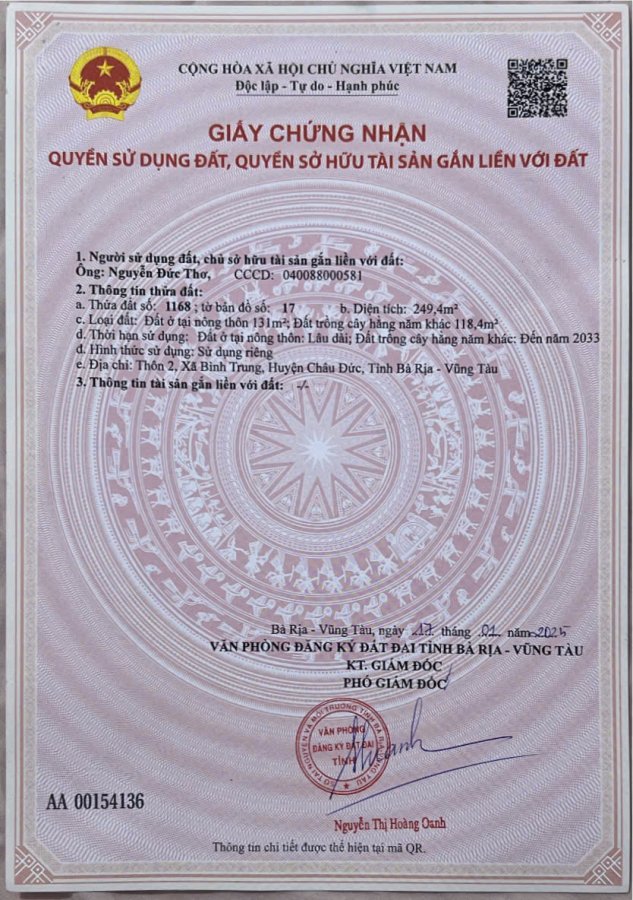 Diện tích ngang 13 dài 23 thổ cư 131
