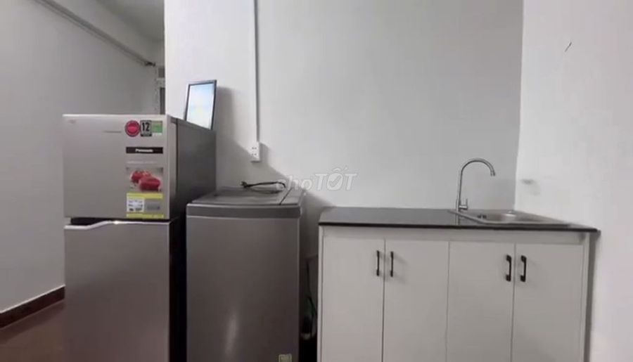 - Nội thất đầy đủ bao gồm máy giặt, tủ lạnh, kệ bếp, giường, nệm, tủ, máy lạnh. _Phòng ngủ tách bếp.