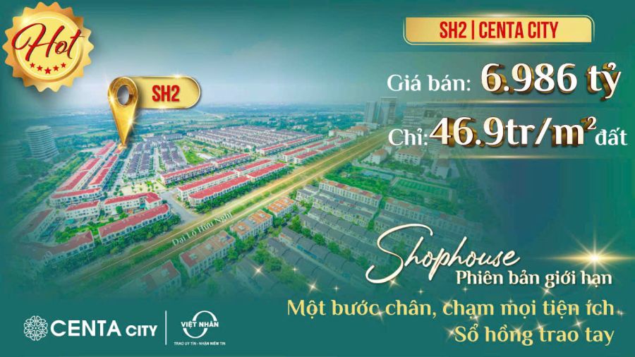 MỞ BÁN phân khu đẹp nhất CENTA RIVERSIDE. Vốn ban đầu trên dưới 2 tỷ (shophoue, liền kề ), 3,3 tỷ ( Biệt Thự).