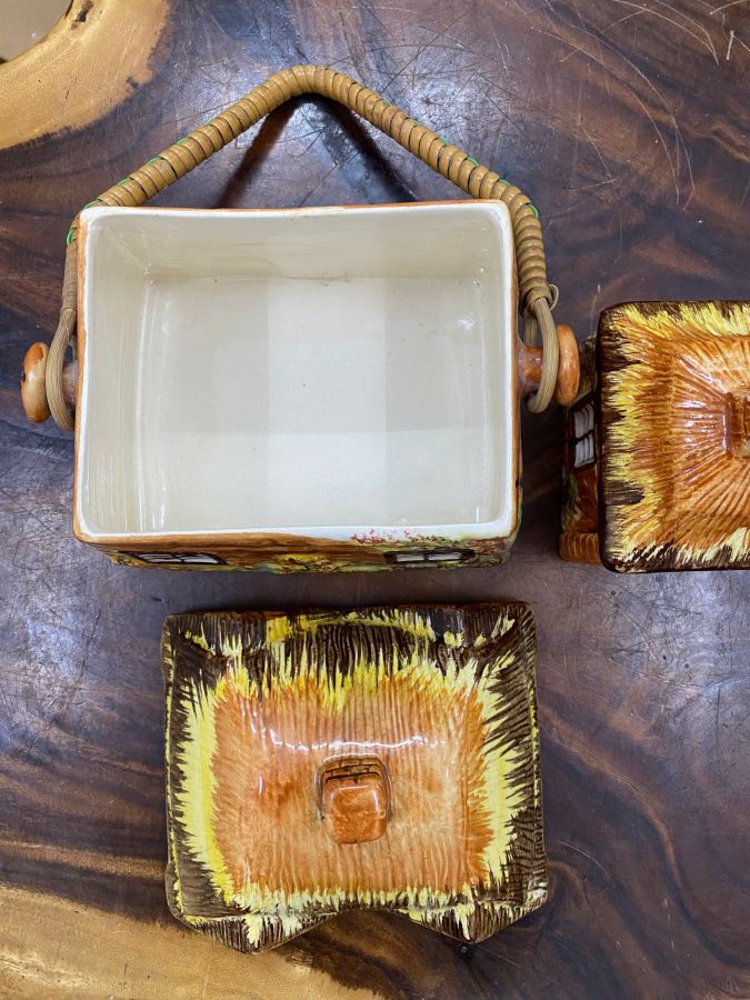 KT: Lớn: C 18cm, N 15.5cm Nhỏ: C 12cm, N 9cmChất liệu: gốm sứCó quai xách bằng mây.