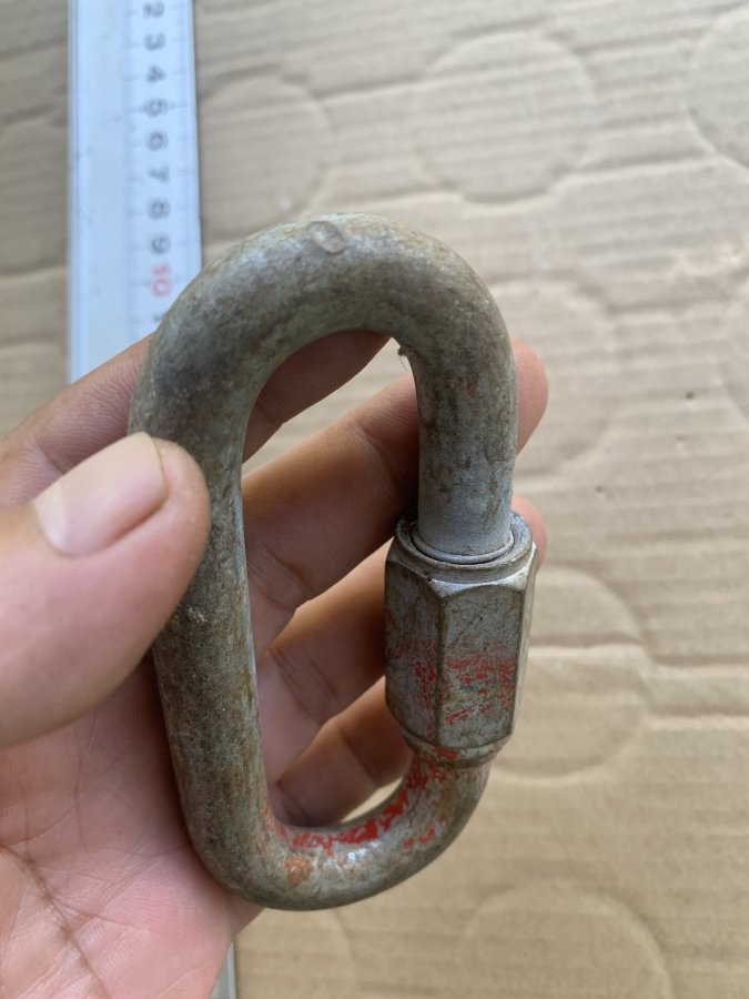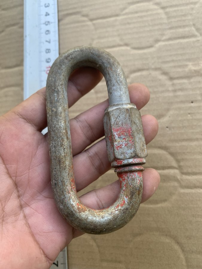 Sản phẩm chưa vệ sinh có bụi bẩn nên không rõ phải thép trắng không. Loại móc có thể vặn khoá lại rất an toàn cho người sử dụng. Cám ơn đã xem tin.