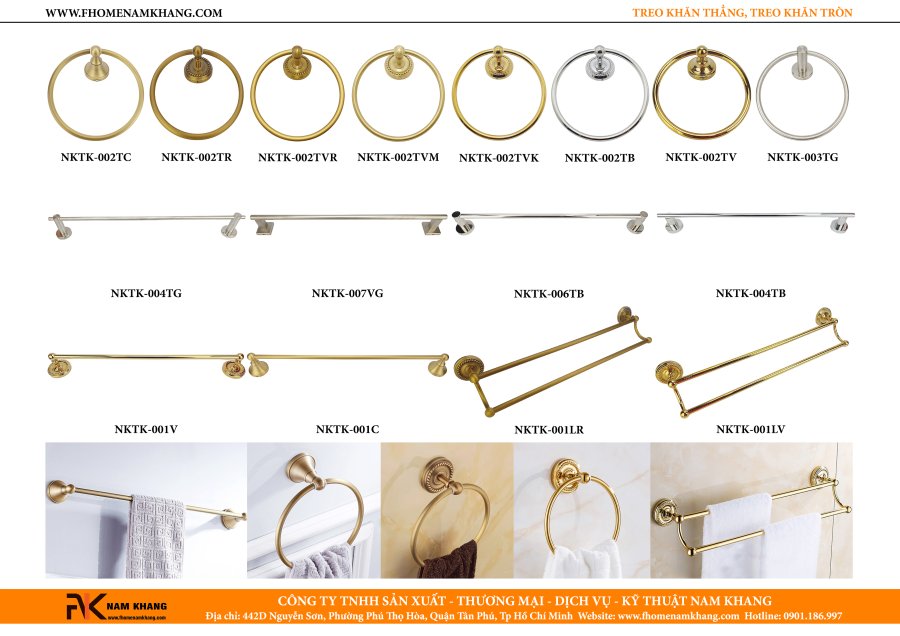 - Đa dạng chất liệu: Móc treo khăn của FHomeNamKhang được cung cấp với nhiều chất liệu cao cấp như inox, đồng thau và các loại hợp kim mạ màu, đảm bảo độ bền cao và khả năng chống gỉ sét trong môi trường ẩm ướt của phòng tắm.