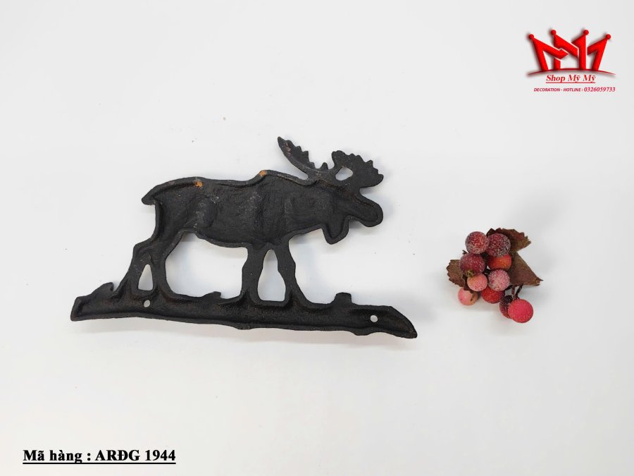 Móc treo tường hình con nai (Moose), được làm bằng chất liệu sắt đúc mang phong cách mộc mạc (rustic).