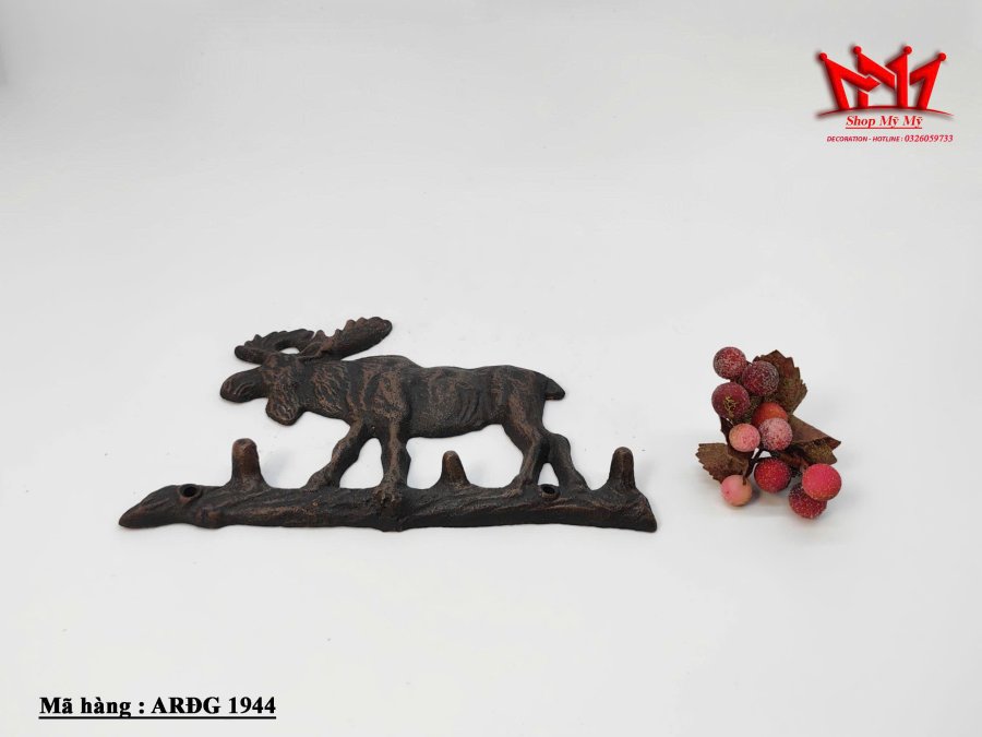 Thiết kế: Hình một chú nai đứng trên một cành cây nằm ngang, cành cây này có tích hợp 3 móc treo nhỏ dạng nhánh cây.