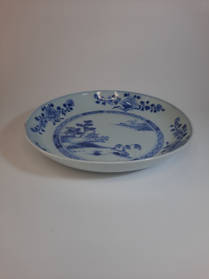 Mời Anh Chị cùng xem dĩa tàu vẽ sơn thủy hữu tình, đk 24cm, có tóc mờ