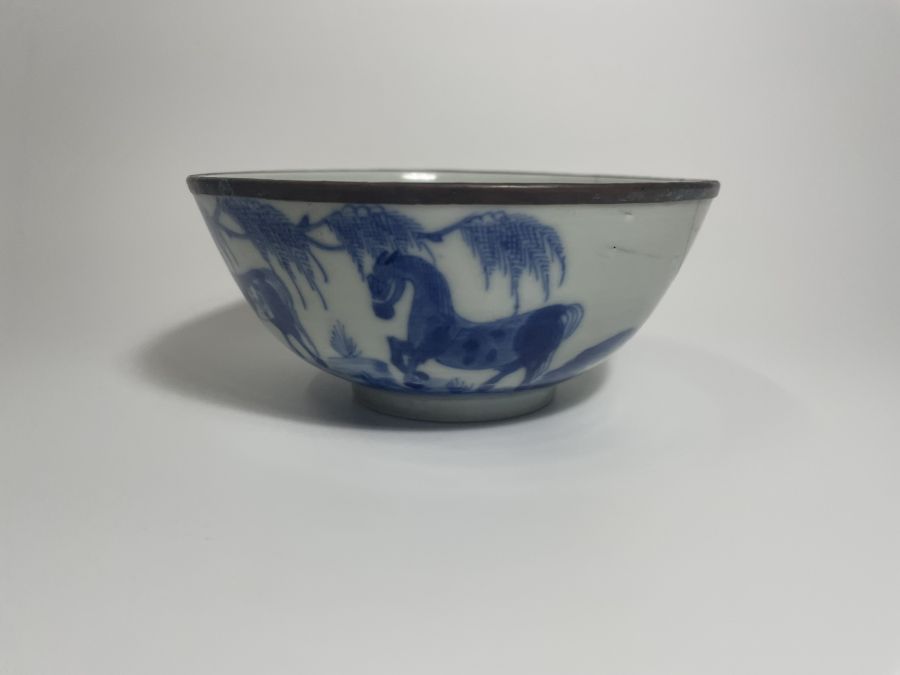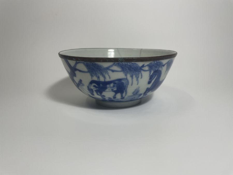 Bát vẽ Mã Liễu chàm đẹp, Có Thơ, Đầu Triện Cuối Lá , đk 12cm