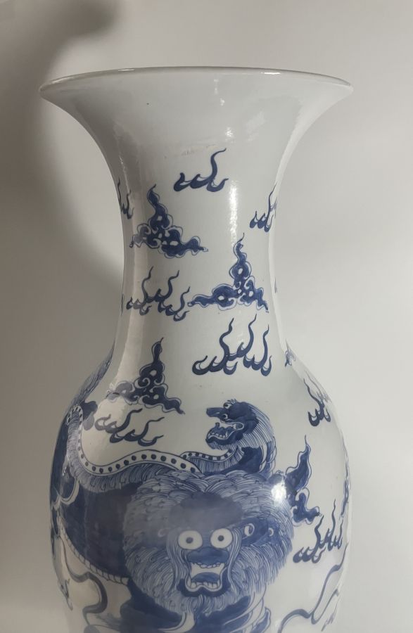 Mời Anh Chị xem, Lọ lân Giao Tử 61cm, chàm men già đẹp