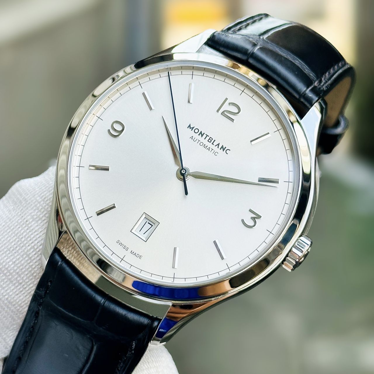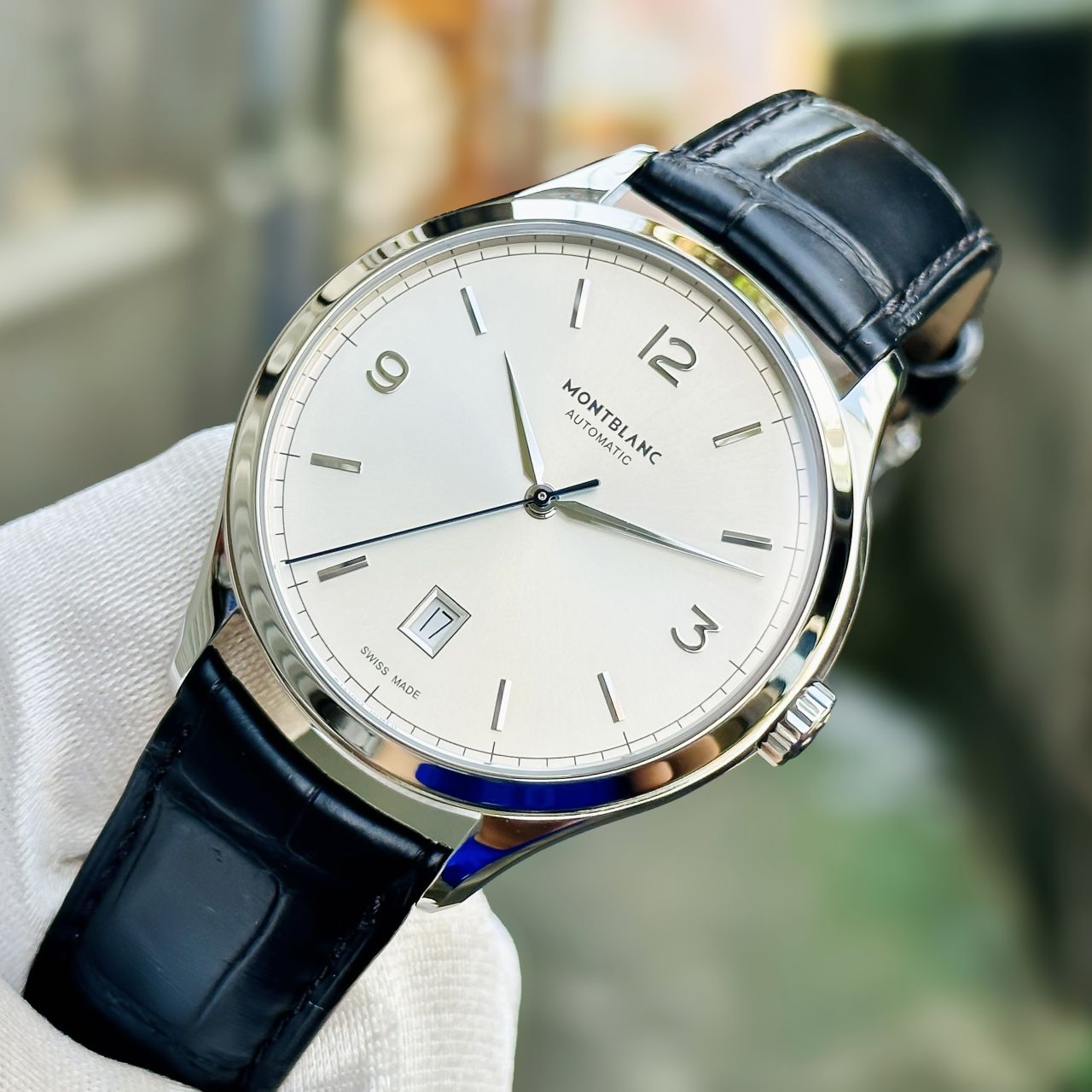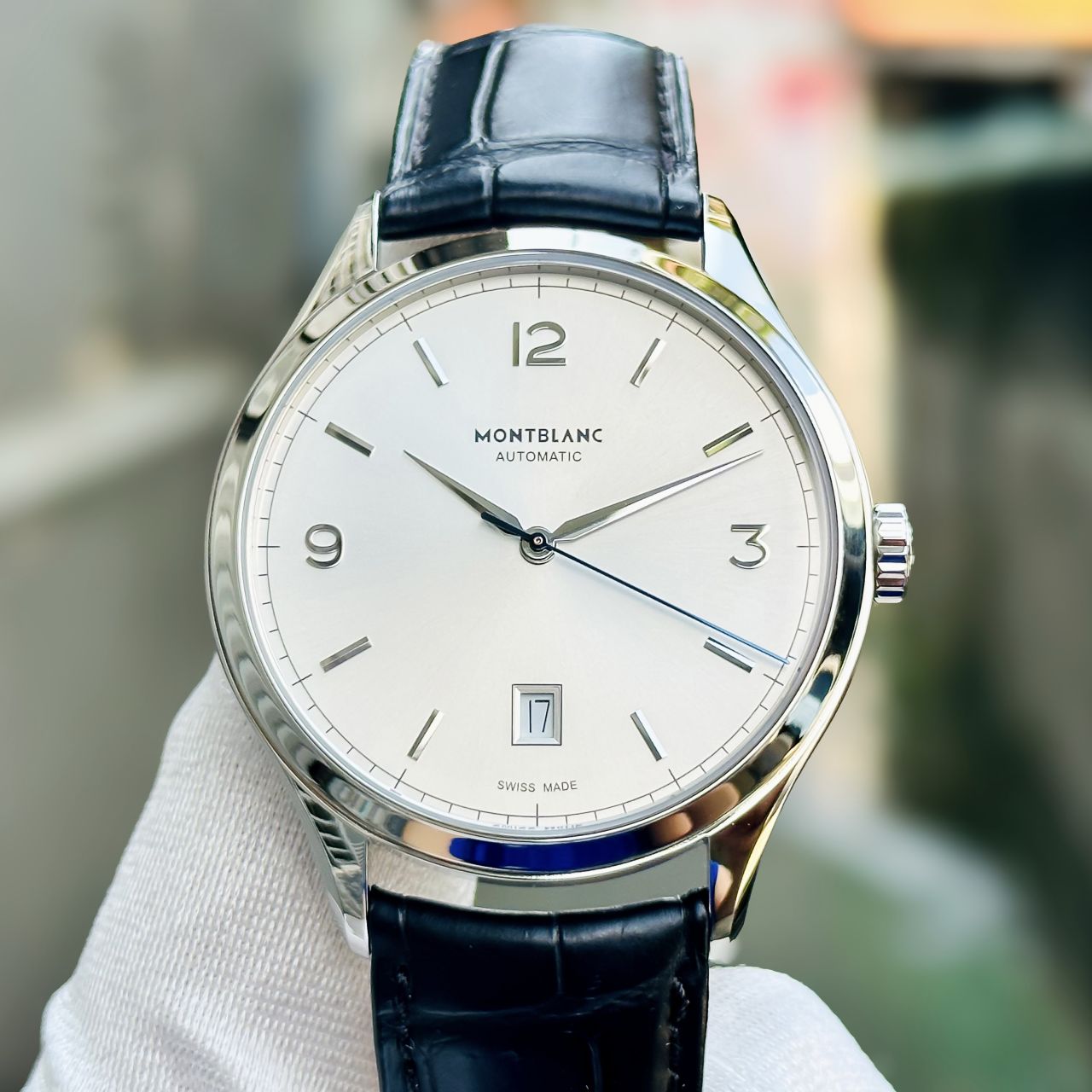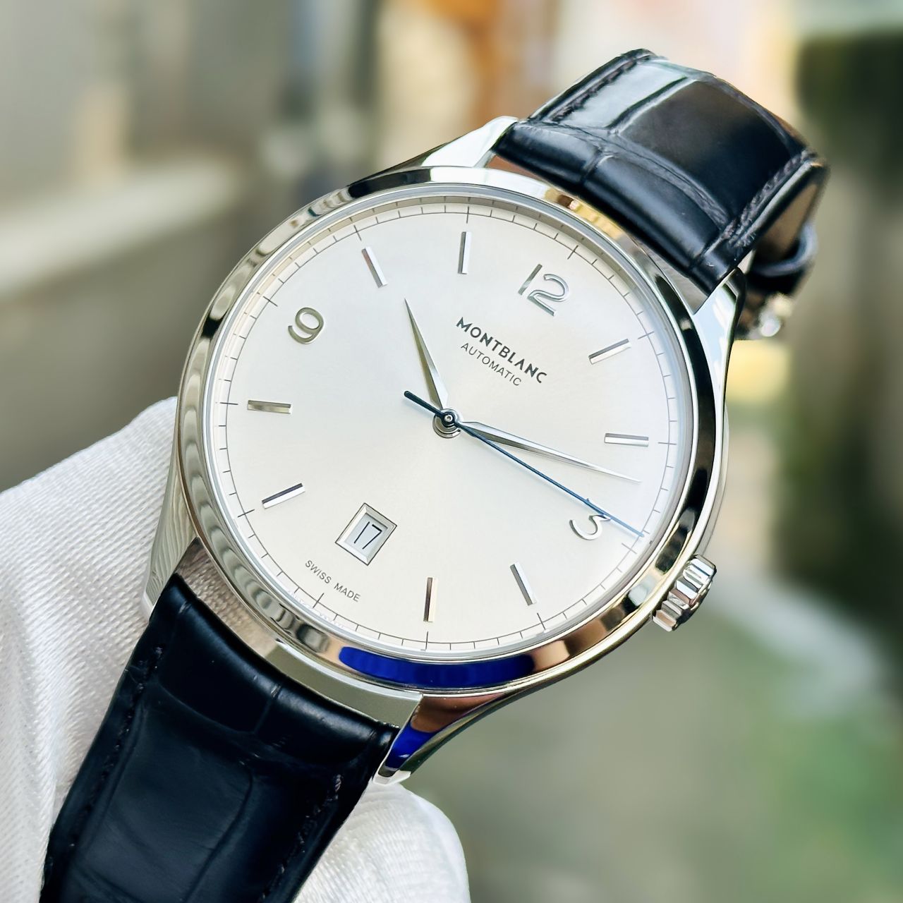 - Mặt trắng, kim giây nung xanh nổi bật
