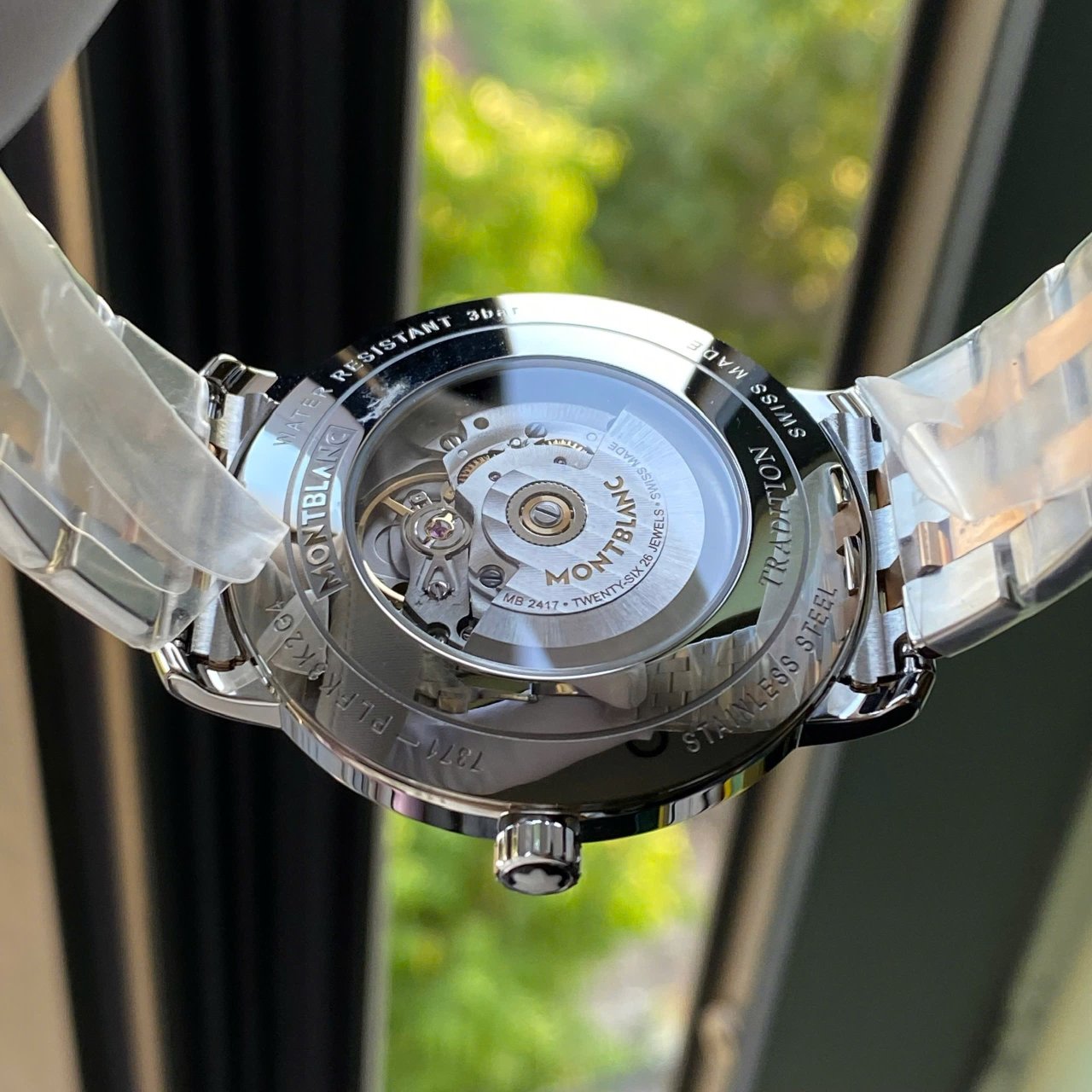- Bộ máy MontBlanc Calibre MB 24.17 automatic movement 26 chân kính và 38h tích cót, tần số dao động 28.800vph