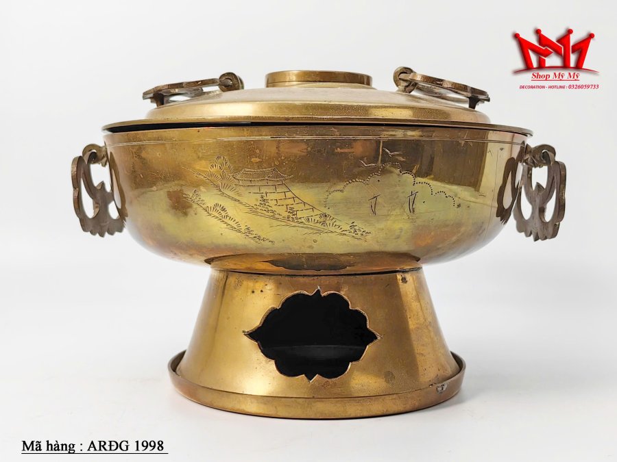 một chiếc lẩu đồng thau cổ điển có quai cầm