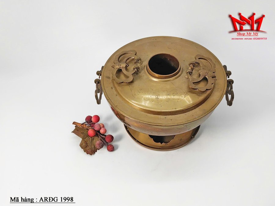 Một chiếc lẩu đồng thau cổ điển có quai cầm