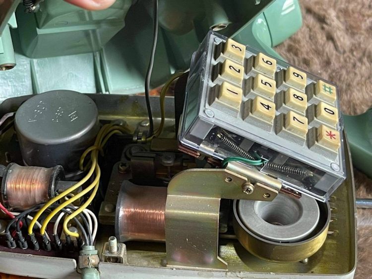 Điện thoại xưa Japan. Nội thất 7 màu, 2 chuông đồng rất chất. Anh chị em về đấu dây dùng thôi ạ.